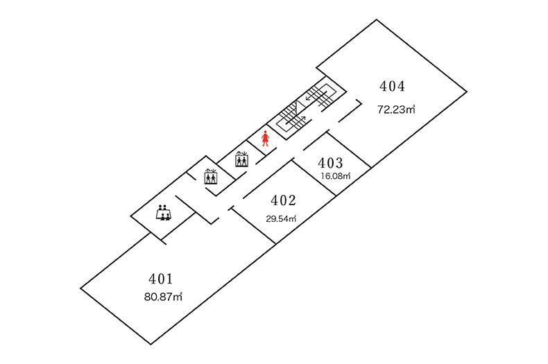 ※家具あり個室 401号室(80.87㎡/24.46坪) 402号室(29.54㎡/8.94坪) 401号室(80.87㎡/24.46坪) |